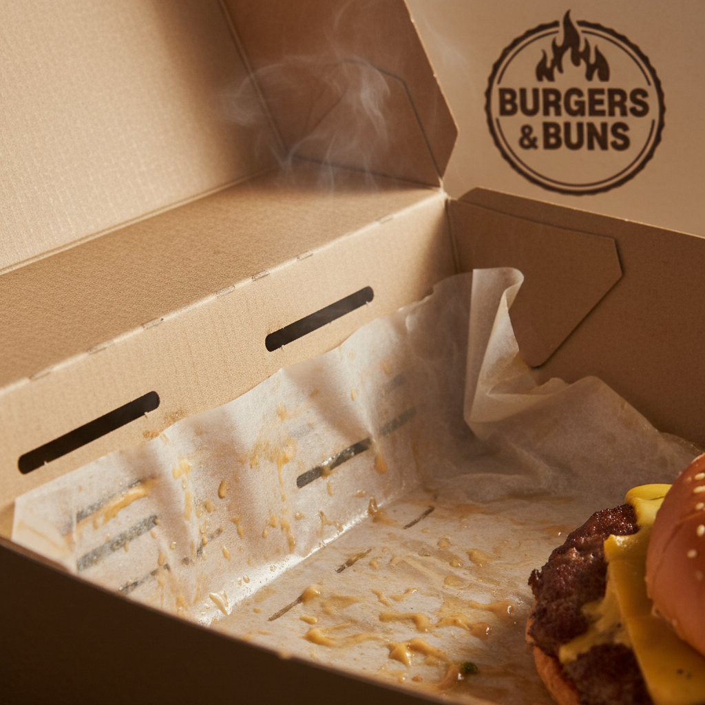 - Material: Corrugated board (F-flute or E-flute) provides insulation, keeping the burger hot while the fluting allows some airflow.