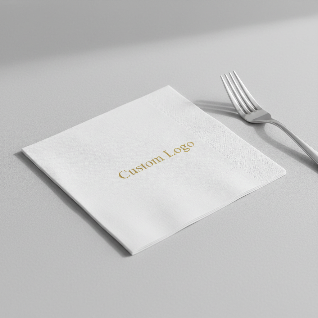 Sophisticated white dinner napkins, perfect for formal events and upscale dining, custom-printed with your unique logo.