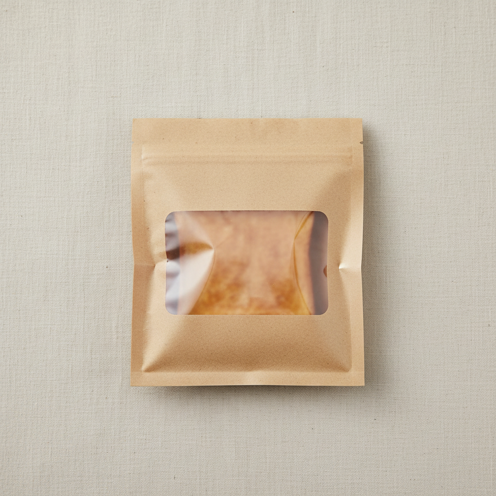 Present your artisanal foods in this eco-friendly kraft PE coated pouch. The generous viewing panel offers a tempting glimpse of contents, while the PE lining provides excellent moisture and grease barrier properties. Perfect for granola, cookies, or small snacks.