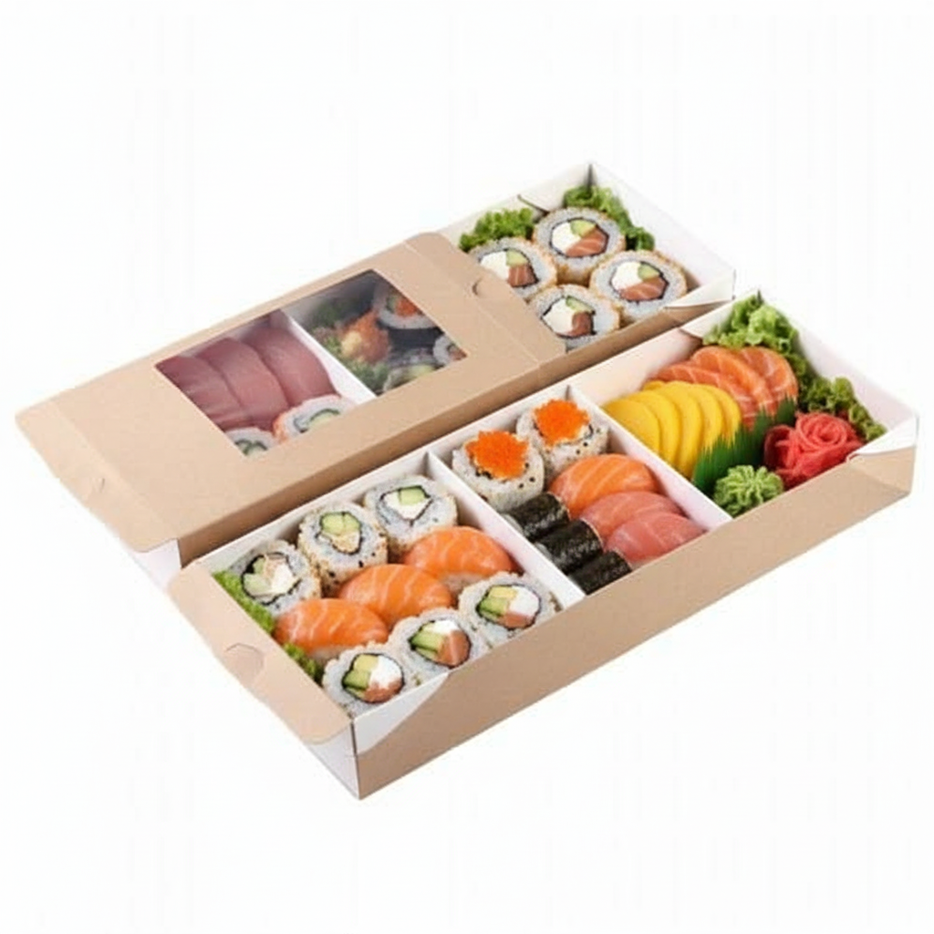 Large Kraft Sushi Takeaway Box with Dividers