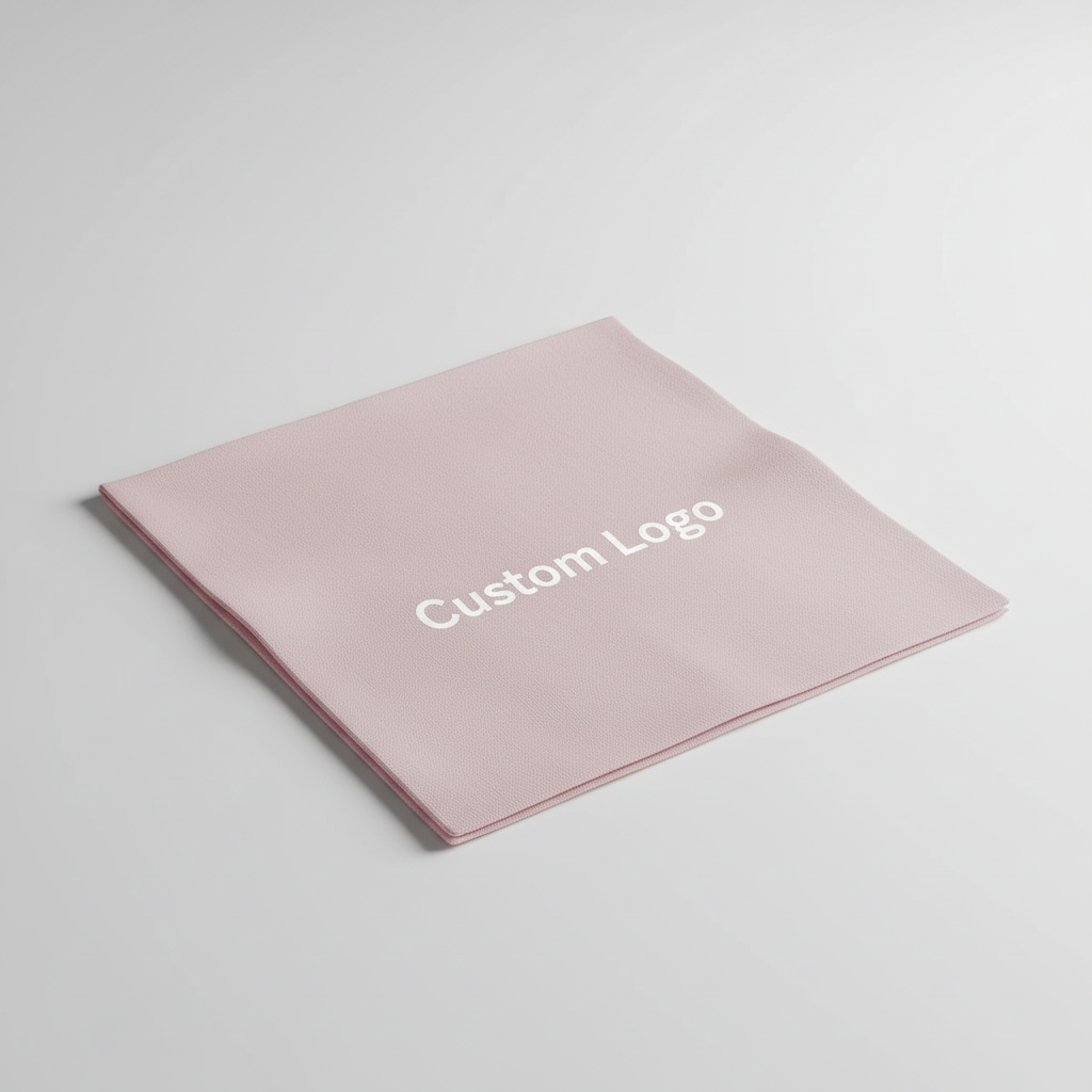 Soft pink napkins with a white custom logo, offering a delicate and personalized touch for any event.