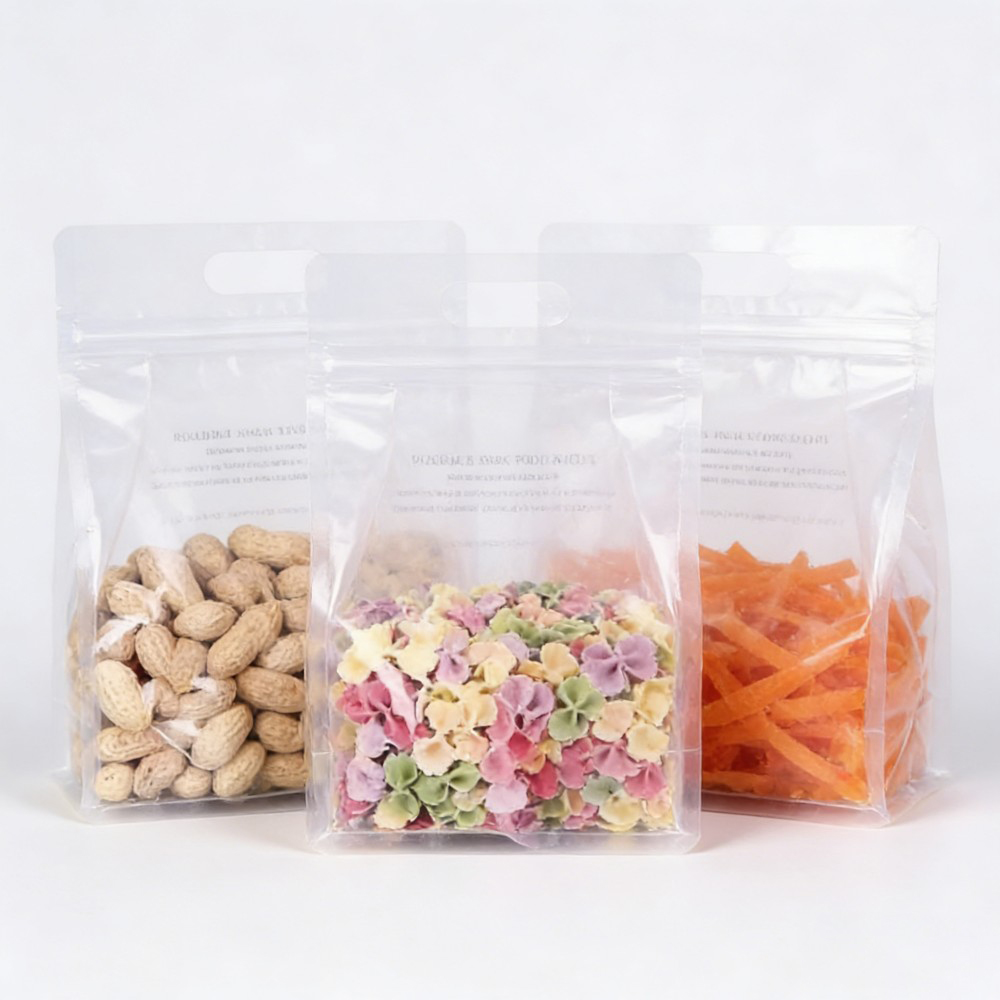 Durable, clear plastic freezer bags designed for optimal food preservation with easy-to-write-on English labels.
