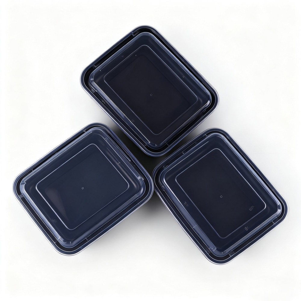 Rectangular Black Plastic Takeout Container with Lid