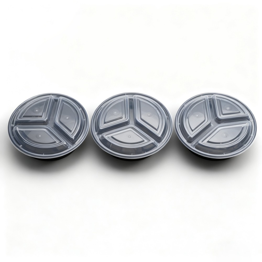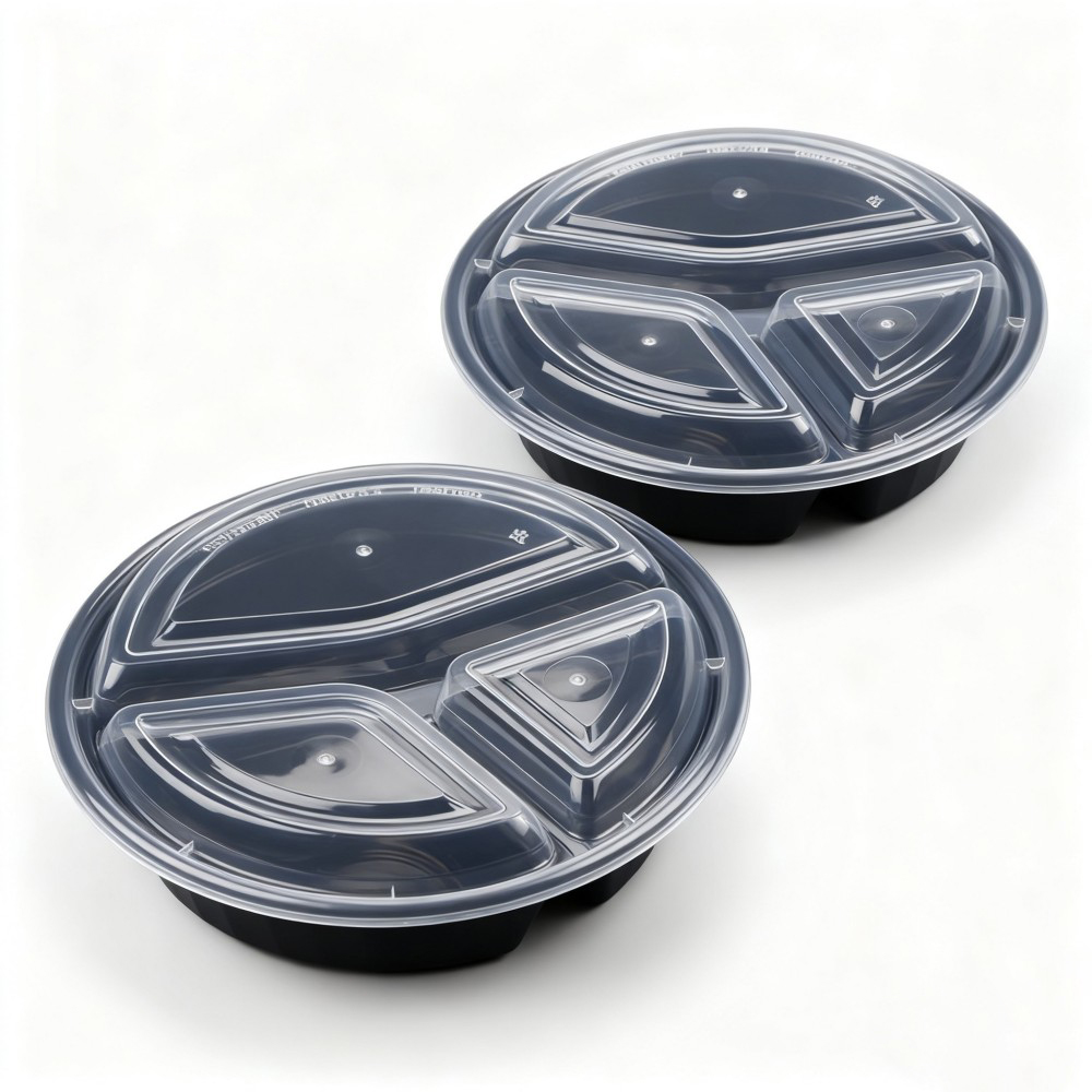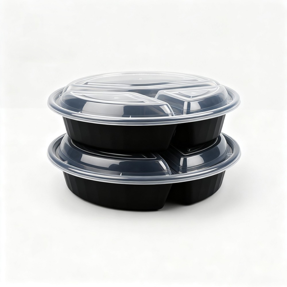 Round Black Plastic Takeout Container with Lid