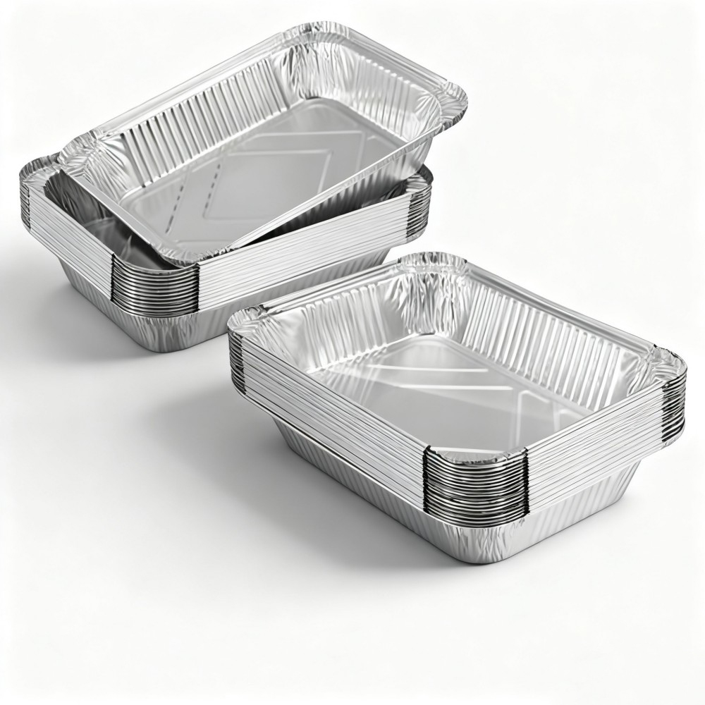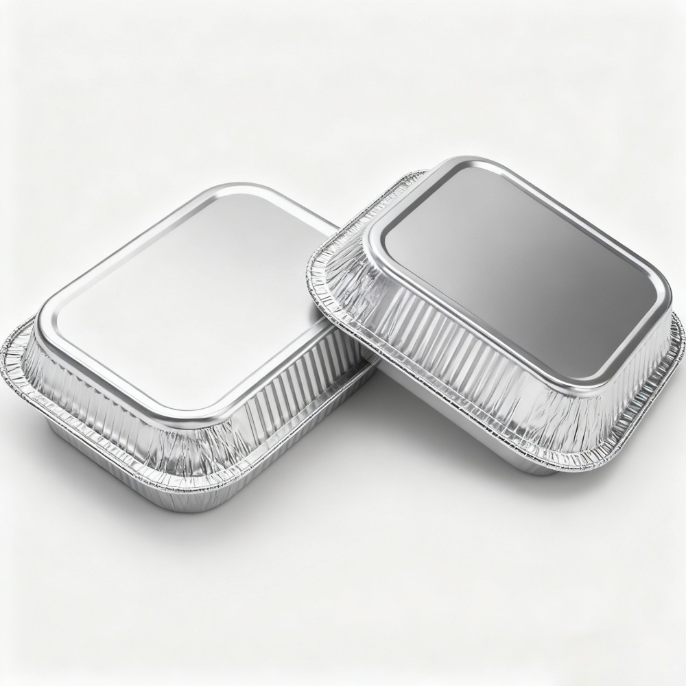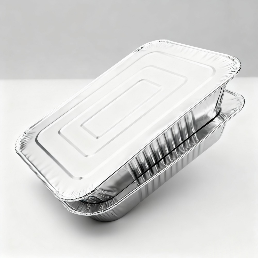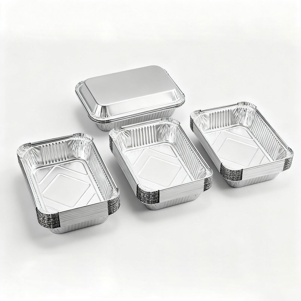 Silver Rectangular Aluminum Foil Containers with Lids