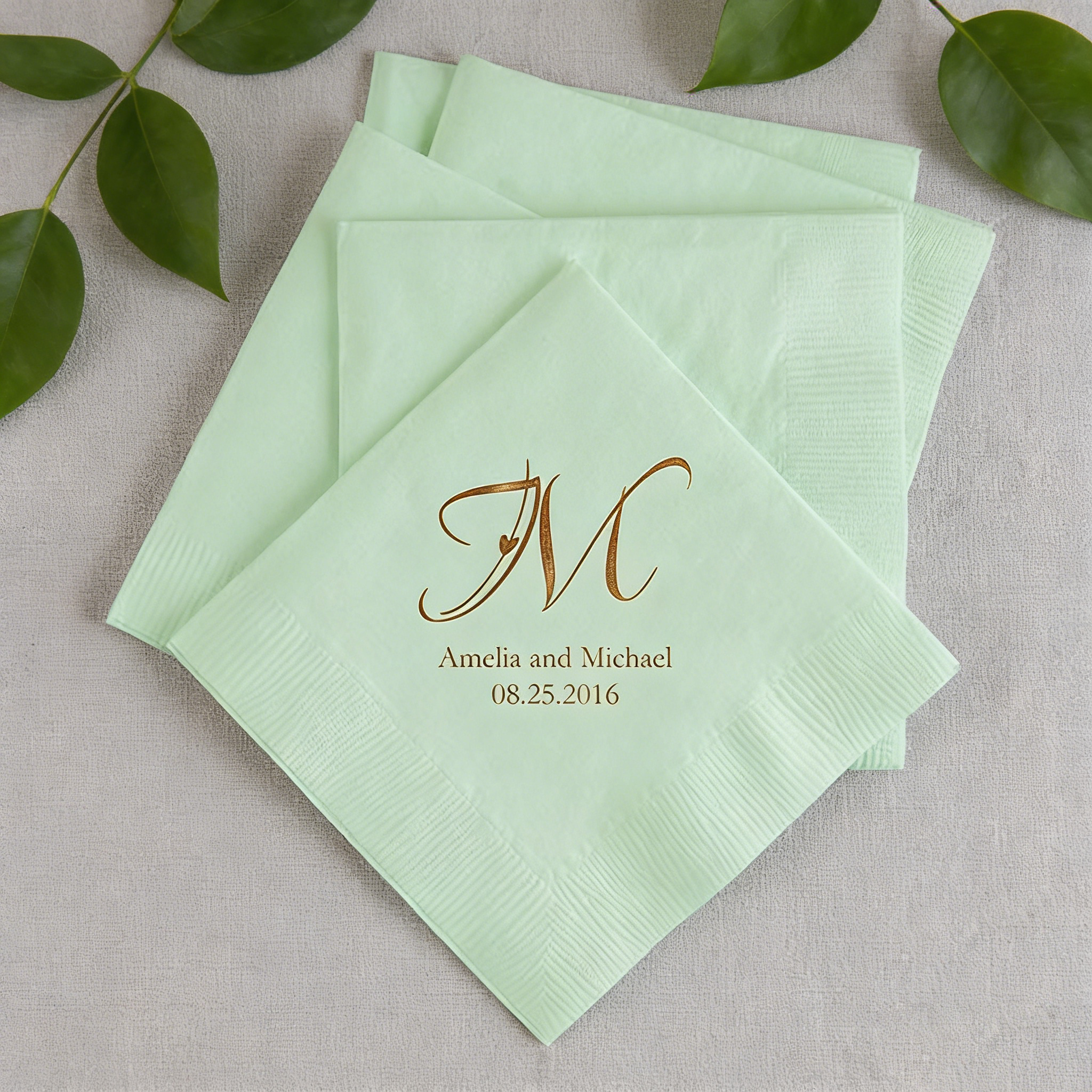 Gentle mint green napkins offering a fresh and subtle touch, customized with your ‘Custom Logo’ for any occasion, from home use to corporate events.