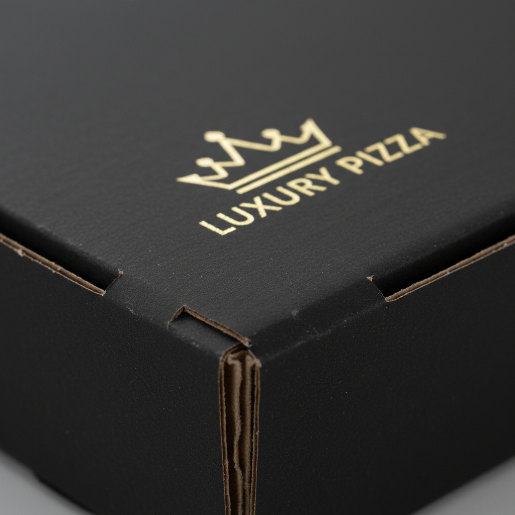 - Foil Stamping: Applying metallic foil (Gold, Silver, Rose Gold) adds a luxury feel. This is often used for gourmet or artisanal pizza brands.